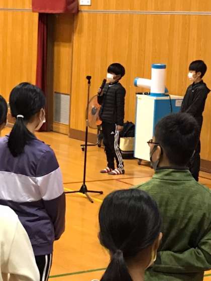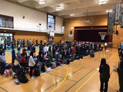 あいにくの天気でしたので、帰校式は体育館で行いました。