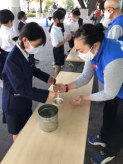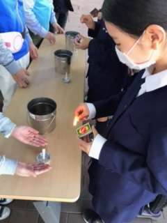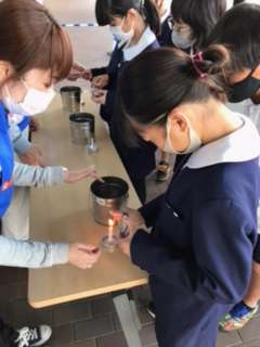 火起こし体験の前に、マッチで火をつける体験をしました。「怖い〜」と言いながら恐る恐るつけている子もいました。