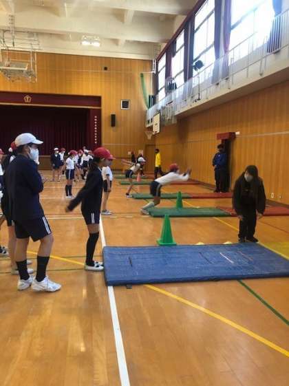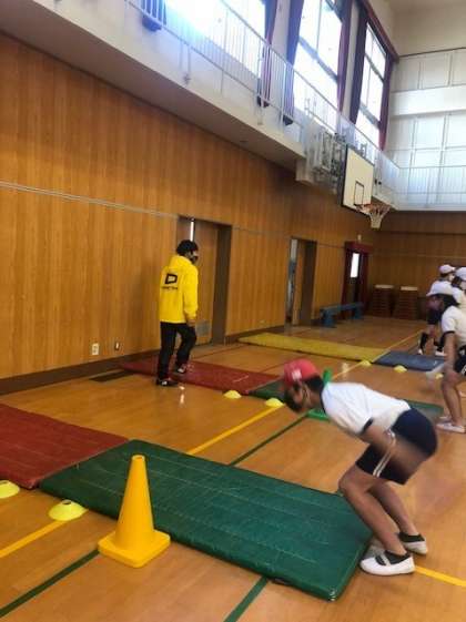より前に跳ぶためには、膝のバネを使うことや、足だけでなく腕を大きく振って反動をつけることなどを講師の先生から教えていただきました。