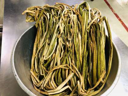 ほしずいきは、納品の時はとても長く、1mぐらいありました。「となりのトトロ」のトトロが持っている傘の柄の部分が「ずいき」です。ちなみに、さといもの茎の部分です。