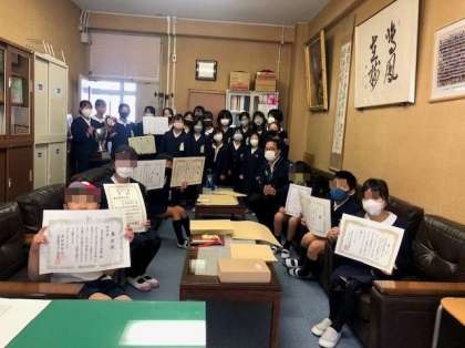 また、2学期にいろいろな分野で頑張り、表彰された児童の表彰式を、校長室で行いました。頑張った皆さんに、心から拍手を送ります!