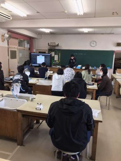 13人のメンターのメンバーが、理科室で「プログラミング」について学びました。