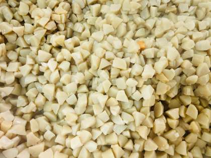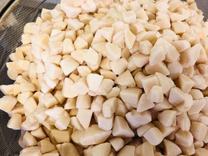 冷凍のホタテとゆでたホタテです。このあとグラタンの具材になります。