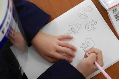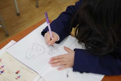 音楽科の時間に、「にほんのうたをたのしもう」という学習をしました。その学習の中に、わらべうた「さんちゃんが」という歌(絵描き歌)があります。