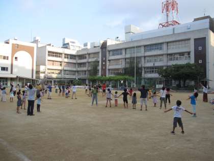 毎年8月1日〜10日まで南大江青少年指導委員連絡協議会主催のラジオ体操会が開催されています。毎日午前6時半から南大江小学校の校庭でたくさんの児童・保護者・地域の方が参加されています。後5日間ありますので、ご参加ください。(東門からお入りください)