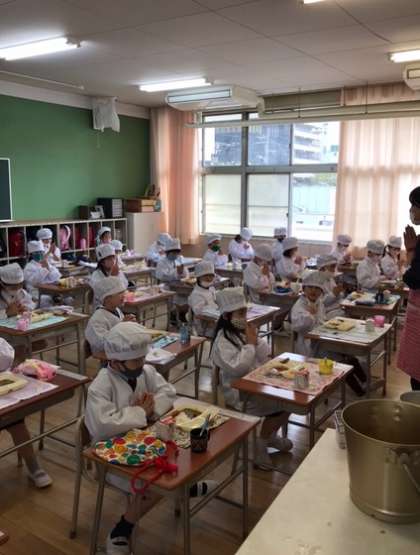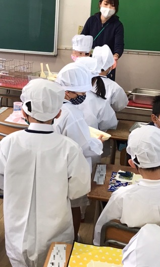少しぶかぶかの、真新しい給食着がとても可愛らしいです。
