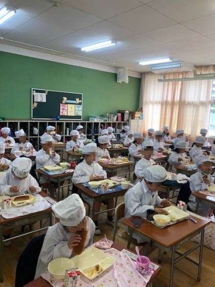 どの子も静かに座って、しっかり噛んで、上手に食べていました。