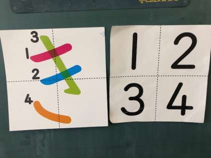 マスを4つに分けて、鉛筆が1〜4のどこから始まり、
