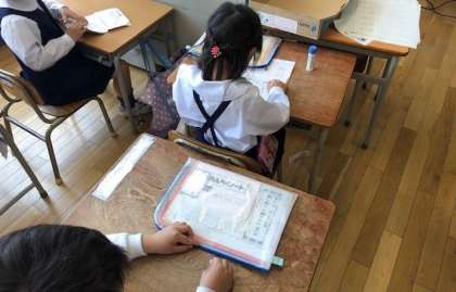 手紙を後ろの人に回したり、連絡が書かれた紙を