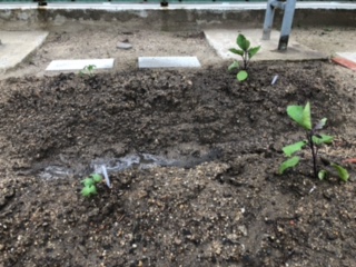 きょう 先生たちで 学しゅうえんに やさいを うえました。