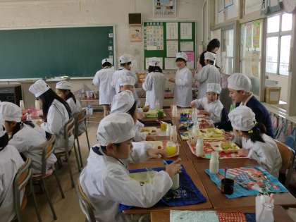 ・6年生が卒業するまで、あと少しになりました。今日は、6年生を囲んで楽しい時間を持ちました。各クラスではランチョンマットをしいた席に6年生を招待し、歌やリコーダー、インタビューなどを交えて、6年生を中心に楽しい会話が弾みました。