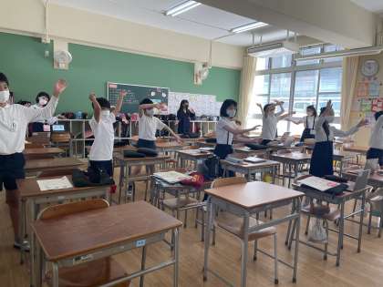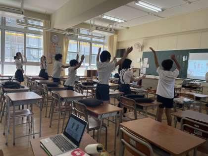 まずは,動画を見ながら一人で練習 その後学校に来ているメンバーで一緒に踊りました。 最初は少し恥ずかしそうでしたが,だんだん体が動きだし,最後はリズムに乗って踊ることができました。全員揃って登校できるようになれば,みんなで一緒に思いきり踊りたいですね。それまでにしっかり練習しておいてください。