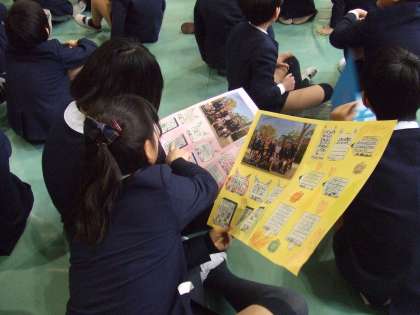 その後、1〜5年生からメッセージカード(たてわり班の写真付き)のプレゼントがありました。最後に全員で『ひまわりの約束』を歌いました。(スクリーンには、たてわり班活動や6年生の思い出の写真が映し出されました)みんなにとって、忘れることのないよい思い出になったことでしょう!