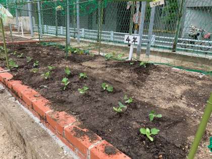 ビニルポットで育てていた苗(なえ)が大きく成長したので、全て学習園に植え替えました。