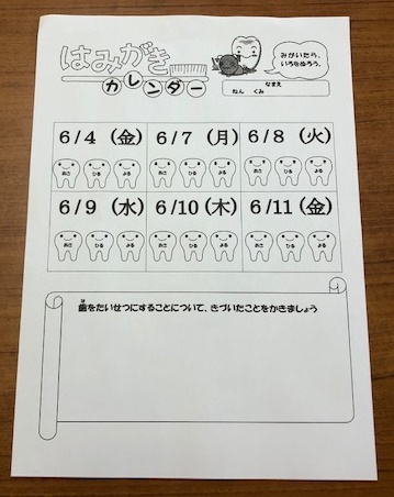 初日は、「歯磨きカレンダー」が配られ、