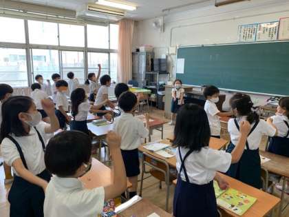 担任の動きをまねして踊ったり、友だちの動きをまねして踊ったりしました。