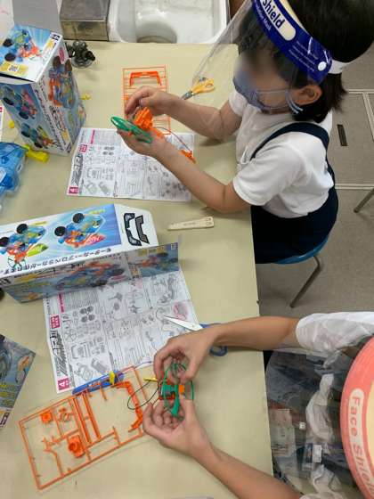 先生の説明を聞いて、説明書もしっかり見ながら頑張っています。
