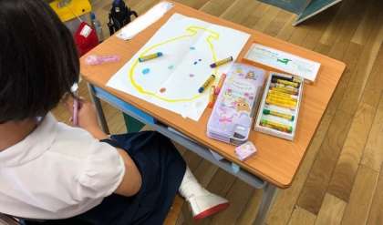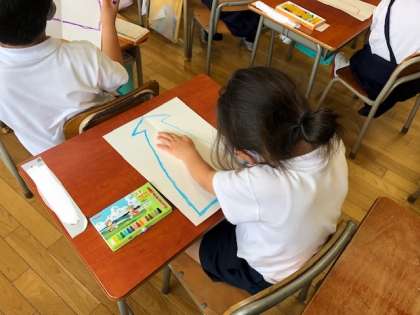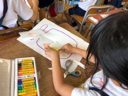 画用紙に丸(〇)や四角(◇)の穴をあけ、