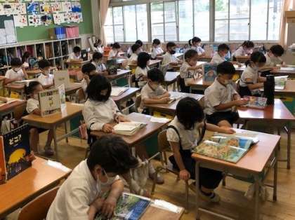 小学校では、毎週火曜日の8:30〜8:40に、読書タイムに取り組んでいます。