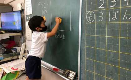 「3−0=3」や「3−3=0」のように、式や答えに「0」が入っているひき算に取り組みました。