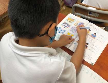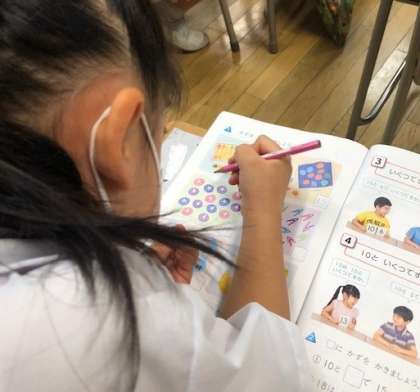 教科書に載っている「クレパス」や「貝殻」、「金魚」や「バナナ」などの数を数えました。