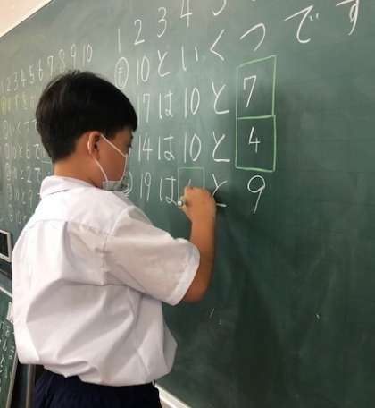 「10と1でいくつ?」という問題から、「11は10といくつ?」という問題に取り組みました。