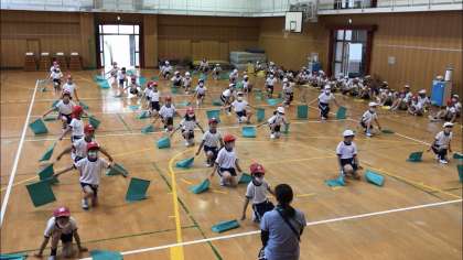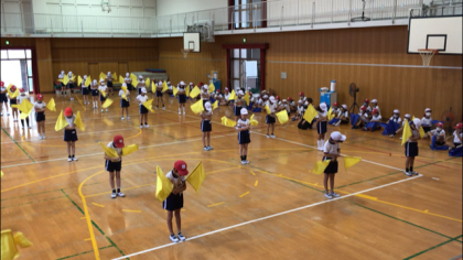フラッグを両手で大きく動かしながら、元気に練習中!!