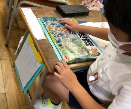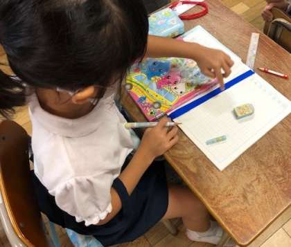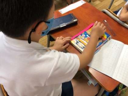本の端とテープの端を合わせ、テープにしるしをつけて、本の縦と横の長さを比べることができました。