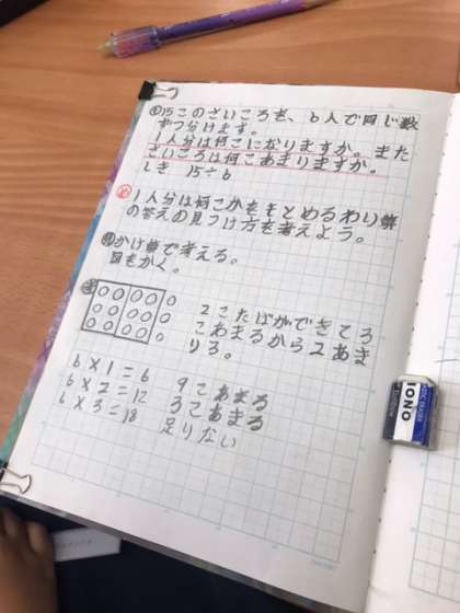 子どもたちは、問題文から読み取れるデータをもとに立式し、図や既習内容を使って、様々な考え方で、答えを導いていました。