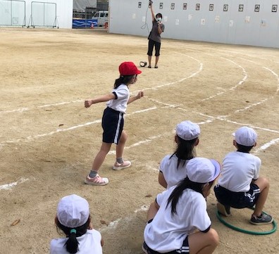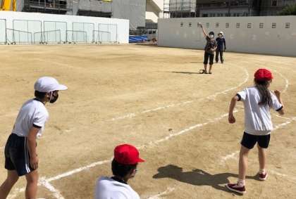 小学校の運動場は広くないので、スタートの場所とスタートの仕方を確認しました。