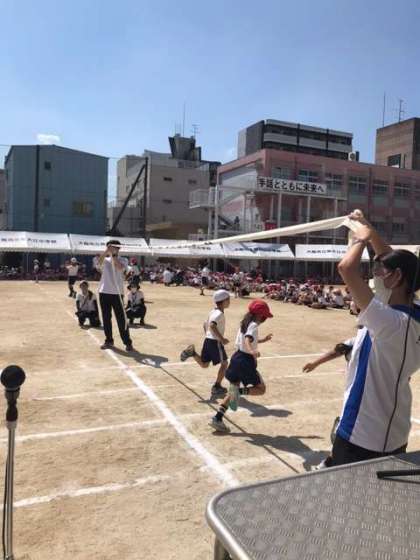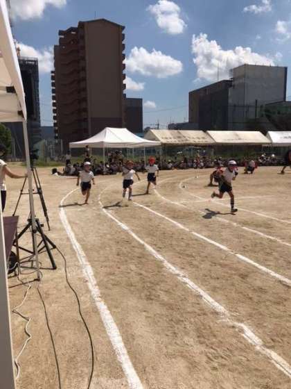 今年はコーナーのあるかけっこです。一生懸命走っています。