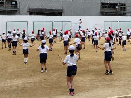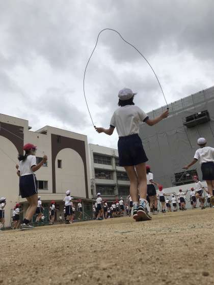 最後には1分間の前跳びチャレンジ。201回というすごい記録を出した児童もいました。