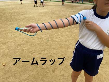 魚釣りのようにしてとび縄の持ち手をつかむ『ピックアップ』や、縄跳びのポーズの一つである『クロスフリーズ』、『アームラップ』など、かっこいいなわとびの技を教わりました。