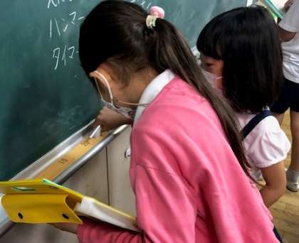 黒板をノックすると「コンコンコン」、ドアを開けると「ギーギーギー」、鉛筆削りは「ガリガリガリ」・・・。