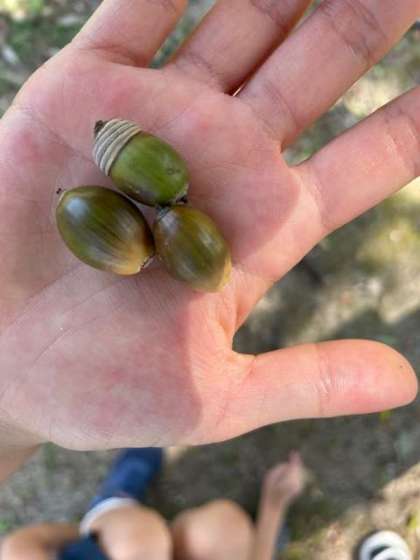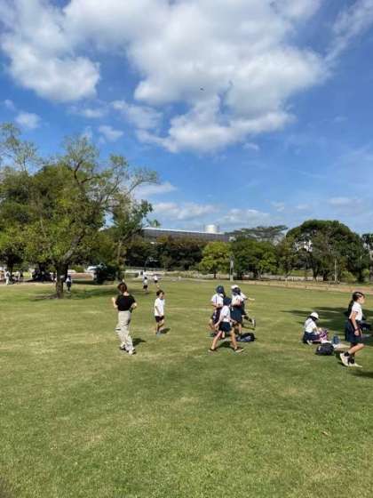 お弁当を食べた後は、走り回ったり、寝転んだり、ドングリを拾ったりと思い思いの時間を過ごしています。