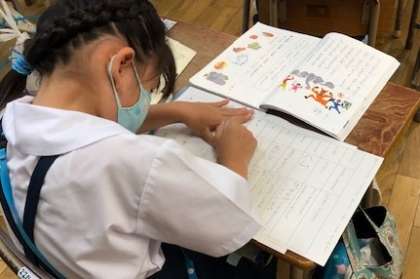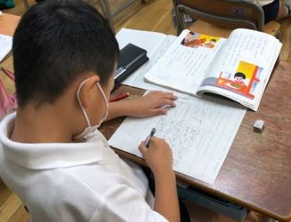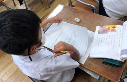 教科書を見ながら、登場した動物やおすすめした食材を文章で書き出すことができました。