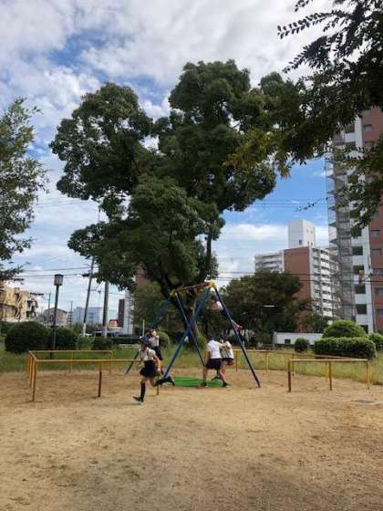 公園には、南大江小学校の児童しかいないので、のびのびと遊んでいます!