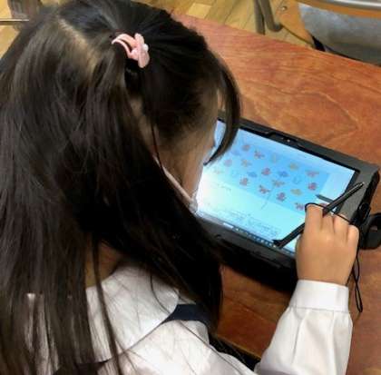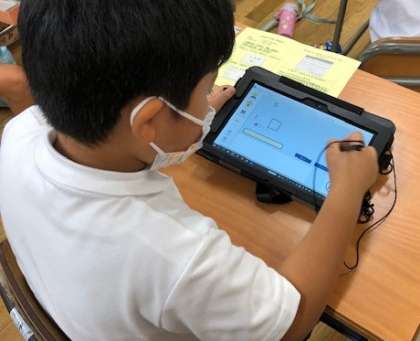 児童一人ひとりに割り当てられている「タブレット端末」を使って、「デジタルドリル」に取り組みました。