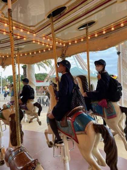 「メリーゴーランド案外楽しい〜」