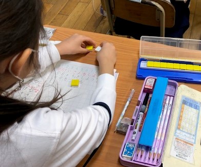 今まで学習したことを思い出しながら、ブロックを使って計算の仕方をノートにまとめました。