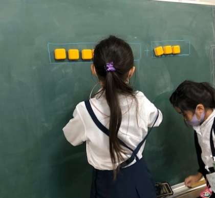 繰り上がりのある簡単なたし算も、少しずつできるようになってきました。