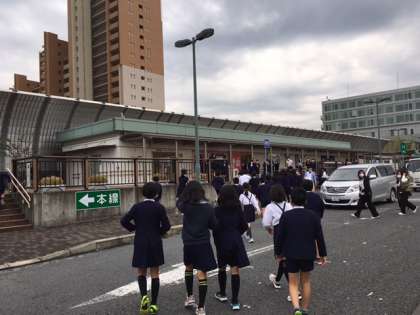 京田辺PAで休憩中です。休憩後、再びバスに乗車し、学校に向かいます。
