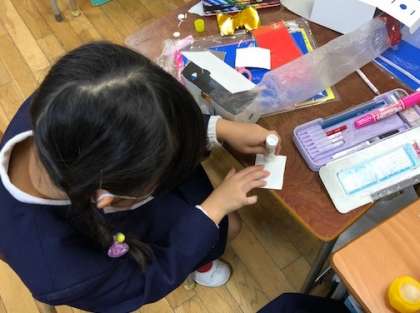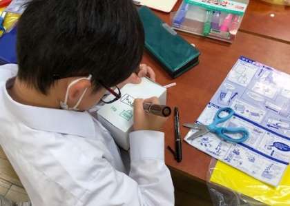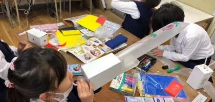 入れ物のまわりに色紙を貼ったり絵を描いたりして、きれいに飾りつけをすることができました。