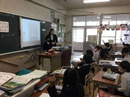 本日、2時間目に2年5組の教育実習生が研究授業を行いました。