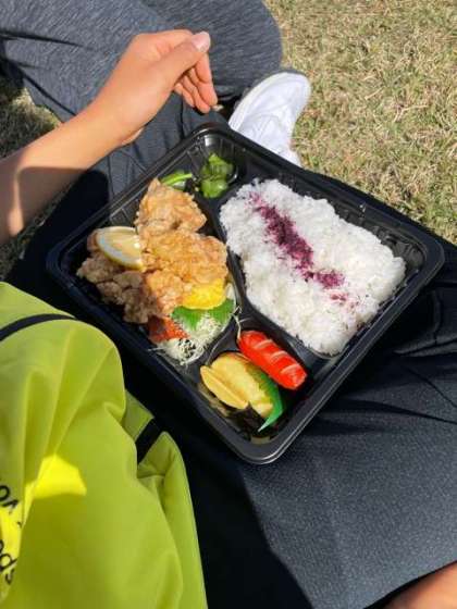 芝生の広場でまずはお弁当です。