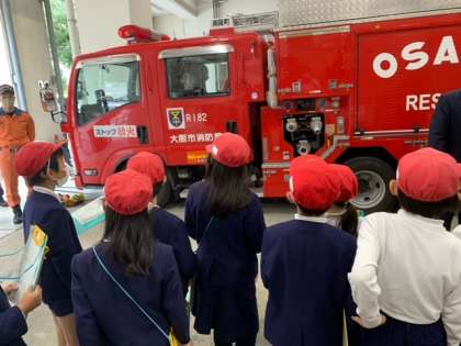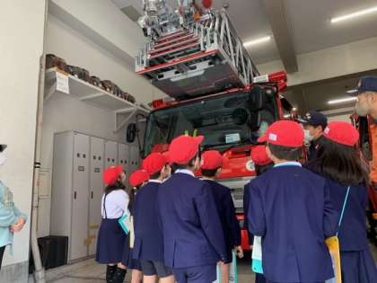 社会科で学習した消防署内の設備や車両を見学し、消防士の方々がどんな仕事をどんな思いで行っているのか聞きました。