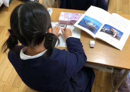 教科書から「漁船」について書かれている文章を見つけ出し、プリントに書くことができました。