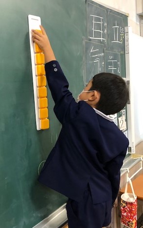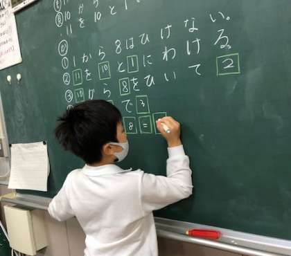 1から8は引けないので、11を10と1に分け、10から8を引き、残った2と1で3になるという計算方法の確かめをしました。