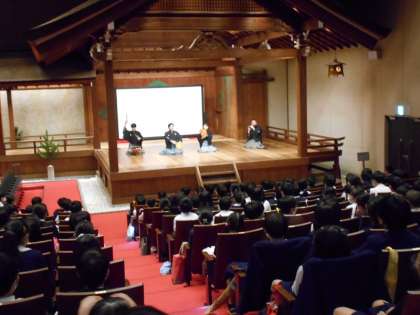 本日の午前中に大槻能楽堂へ能楽体験へ行きました。