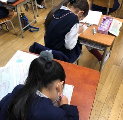 「かん字を かいたり、本を よんだり するのが すきだから こくごが すき。」